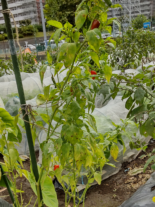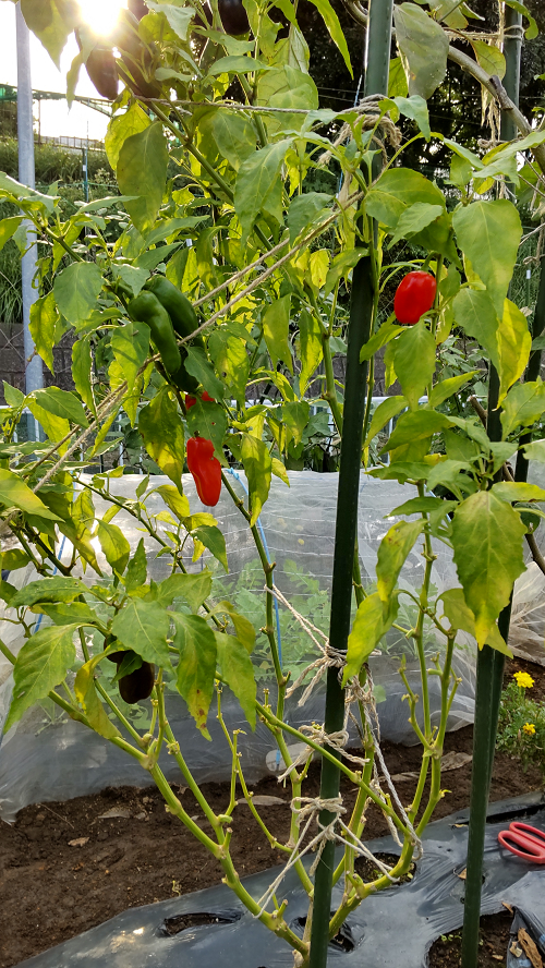 収穫がだんだんと少なくなってきました。まだ週に4~5個は収穫できていますが、11月上旬にはスナップエンドウの種まきをする予定の為、もう少しすると片付けます。