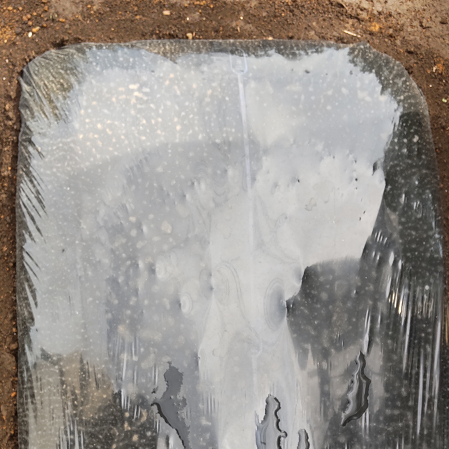 スコップで掘り起こした後、施肥し鍬でよく耕して黒マルチで覆っておきました。